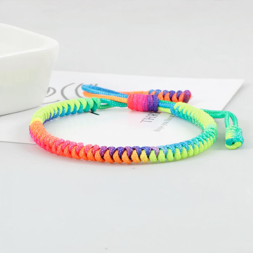 Léger et confortable à porter, ce bracelet s'ajuste facilement à tous les poignets grâce à son système de fermeture réglable. Ce bracelet brésilien rond aux couleurs pastelles sera votre allié mode idé al pour illuminer votre look et affirmer votre style avec élégance. Ce bracelet est composé de fils de coton tressés dans des tons doux et lumineux tels que le rose pâle, le bleu ciel, le vert menthe et le jaune pastel.