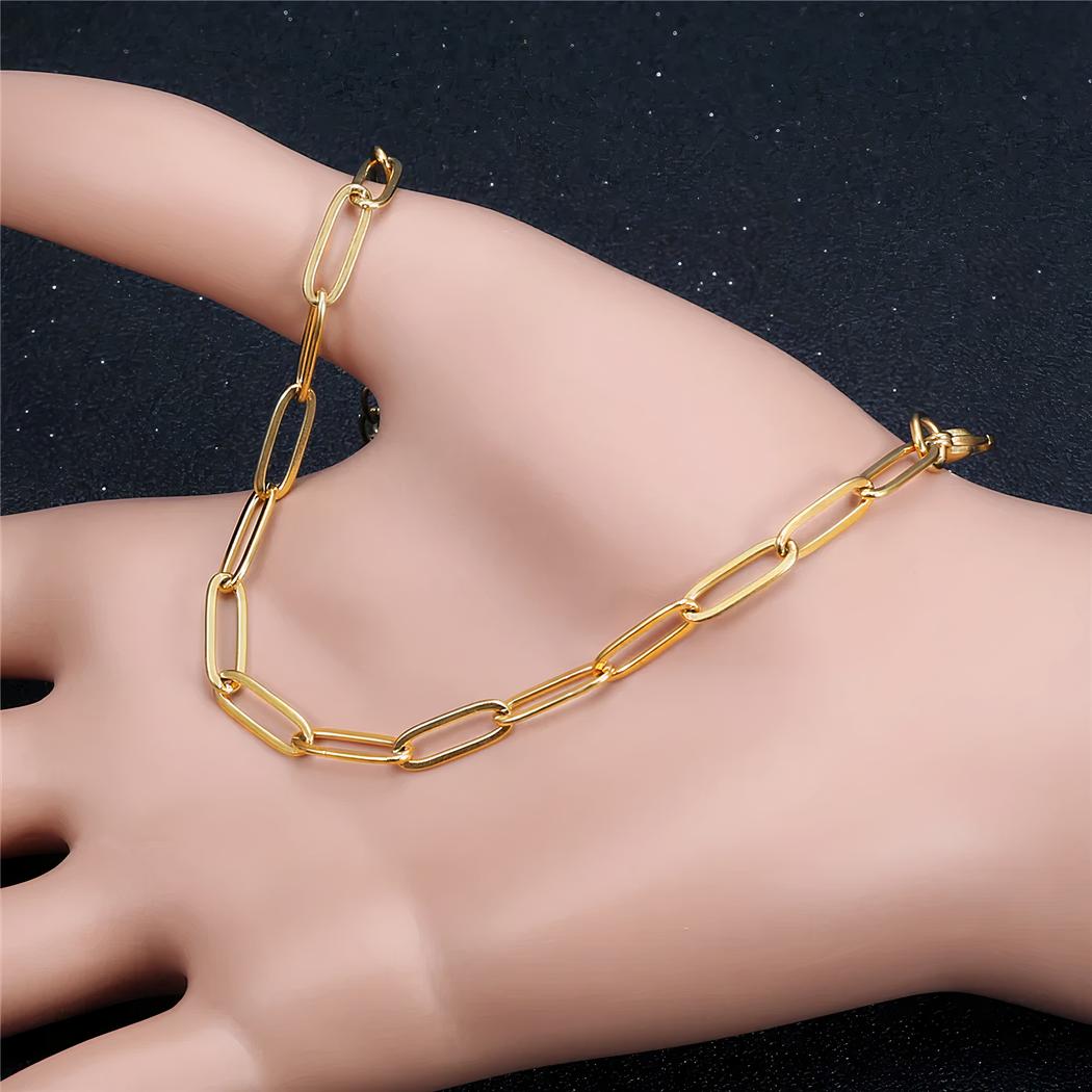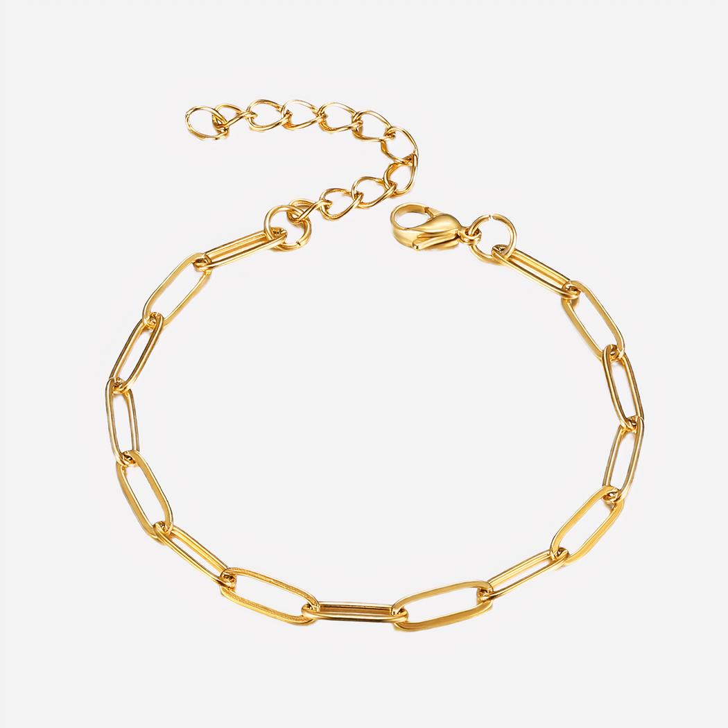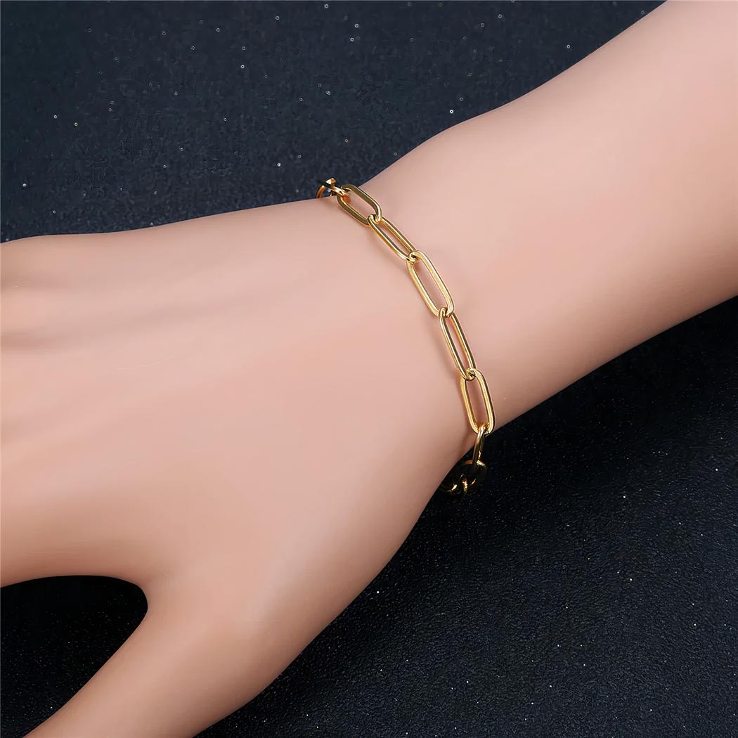 Ce bracelet est polyvalent et peut être porté seul pour un look minimaliste ou associé à d'autres bracelets pour un style superposé et personnalisé. La fermeture à mousqueton sécurise le bracelet autour de votre poignet, assurant un ajustement confortable et sûr tout au long de la journée. Commandez dès maintenant ce joli bracelet chaine maillons larges.