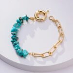 Les pierres colorées sont disponibles dans une variété de teintes vives et éclatantes, allant du bleu turquoise au rose pâle en passant par le vert émeraude et le violet profond. Chaque pierre est soigneusement sélectionnée pour sa qualité et sa beauté naturelle, ce qui confère au bracelet une allure luxueuse et raffinée.