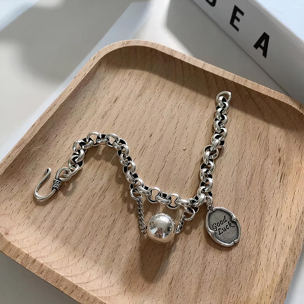 Le bracelet chaîne argenté pour ado fille est délicat. Les perles et le pendentif chance sont mignons !