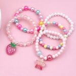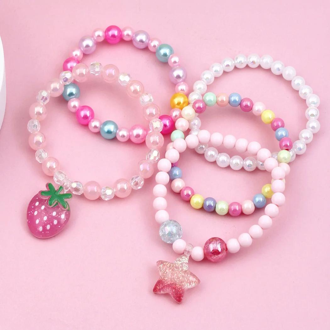 Lot de bracelets perlés en acrylique forme fraise et étoile pour petite fille