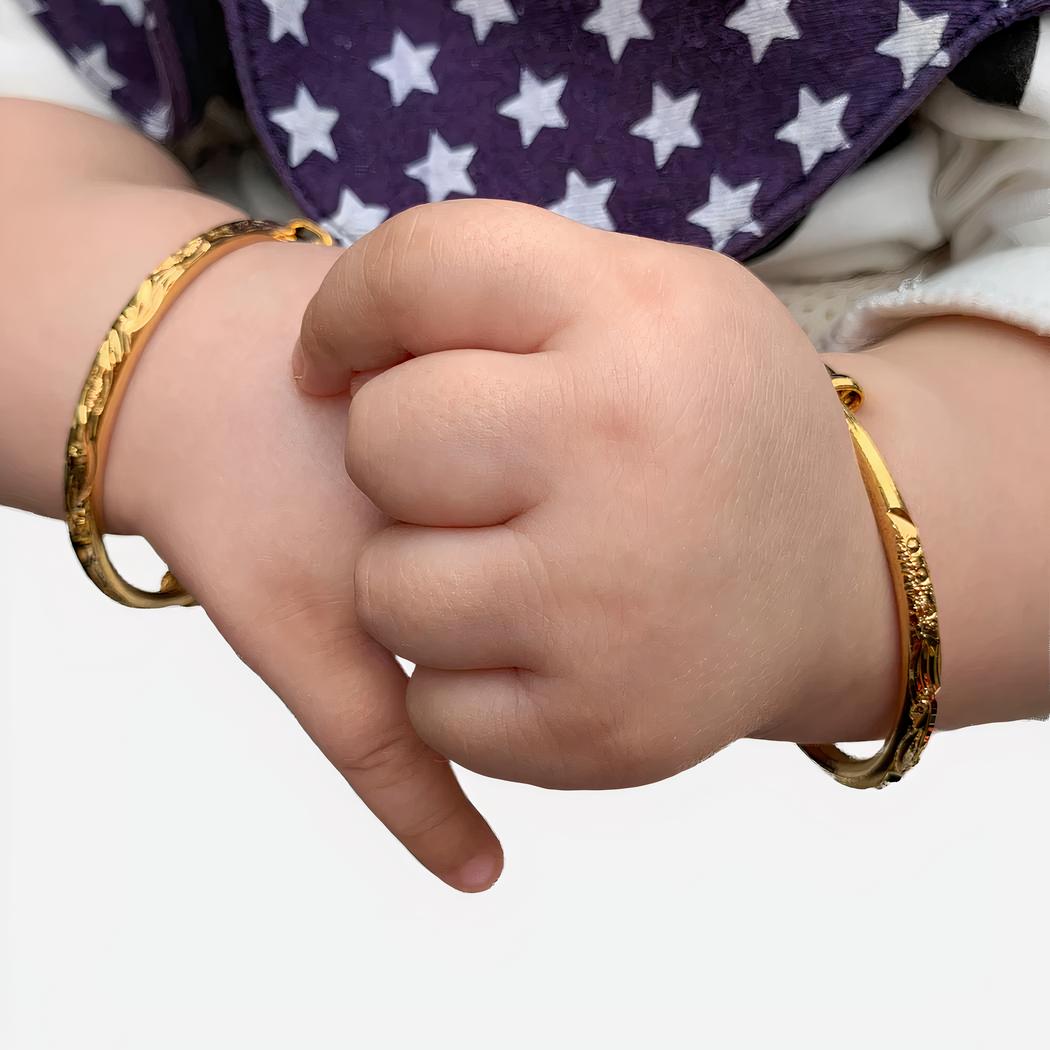 Notre bracelet jonc doré classique pour enfant, en acier inoxydable, est un cadeau de naissance élégant et durable. Son design intemporel s'adapte à toutes les occasions, ajoutant une touche raffinée aux tenues des plus petits. Robuste et résistant, il accompagnera votre le poignet de votre petit bébé pendant plusieurs années.
