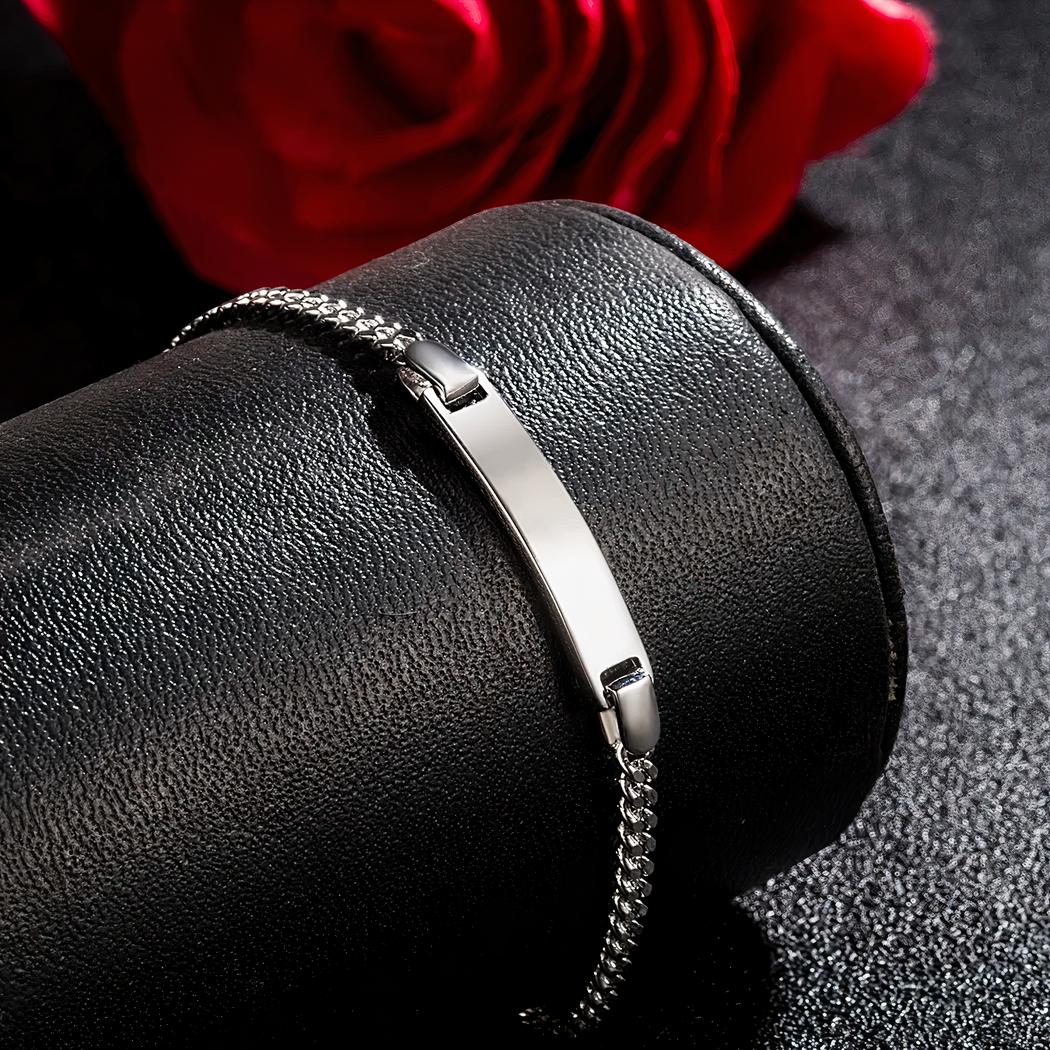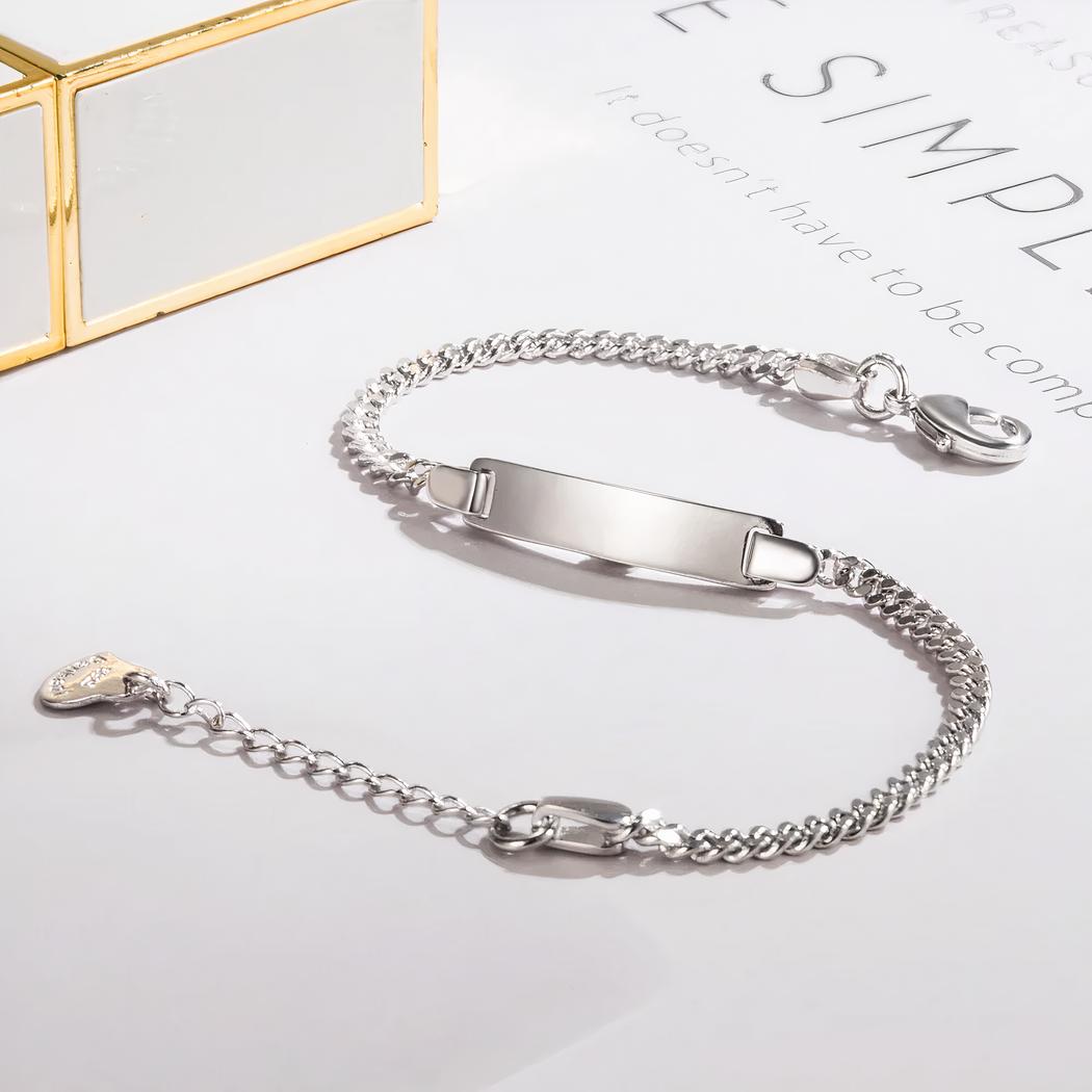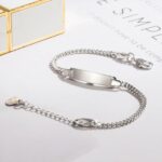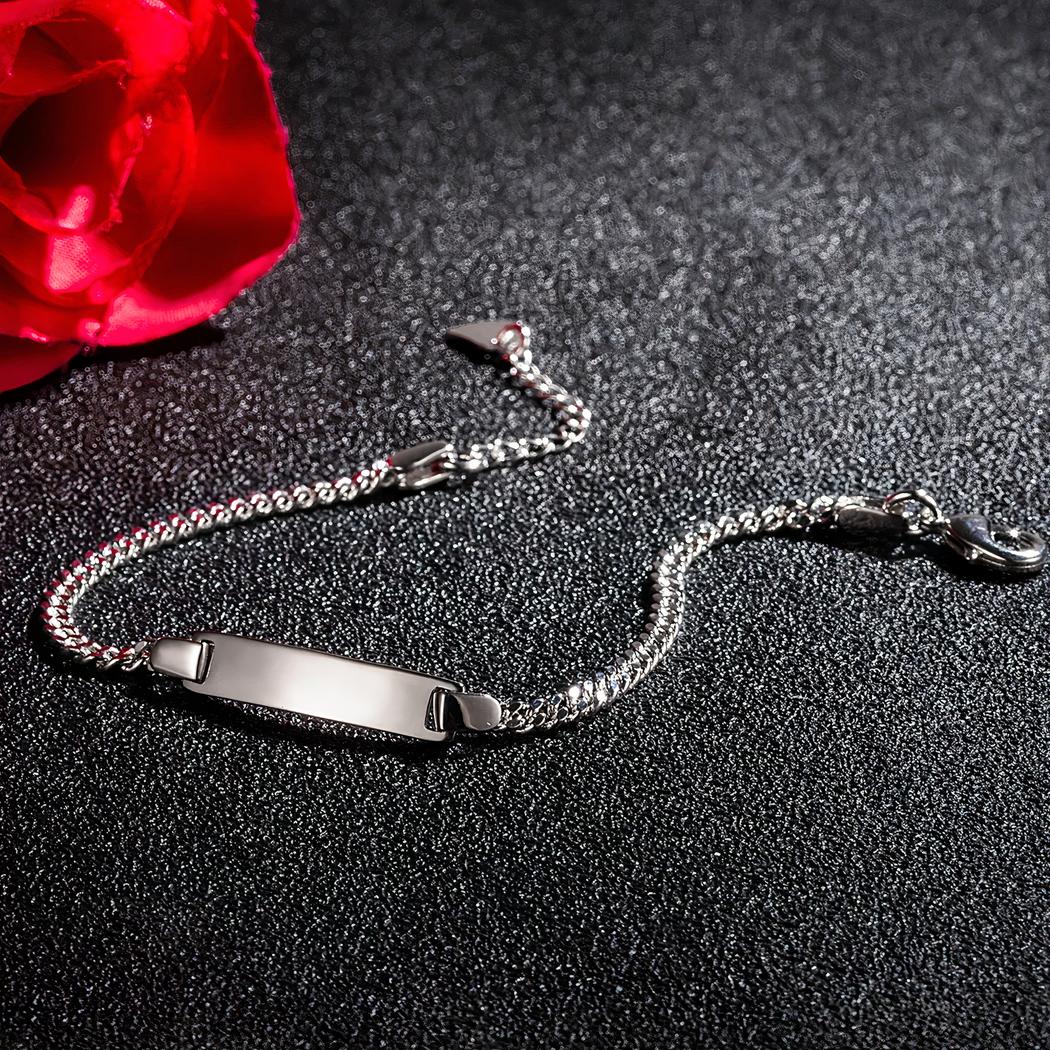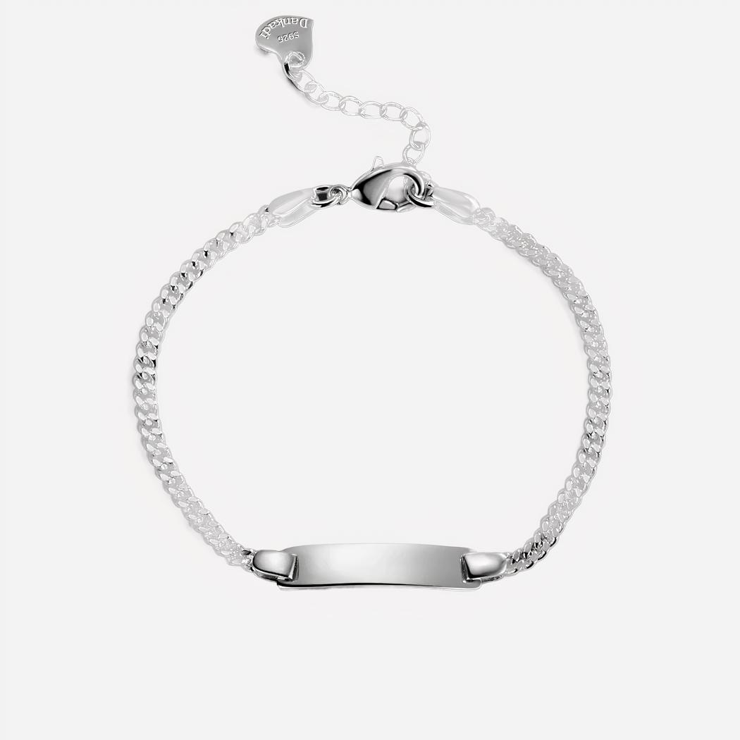 La plaque de cette gourmette est conçue pour les poignets féminins, fine, légèrement incurvée et surtout munie de maillons plats de chaque côté qui apportent un look très chic, à la beauté épurée. La chaîne est réglable en longueur par une extension de maillons simples : cette dernière se termine par un petit coeur en argent où est gravé le poinçon 925.
