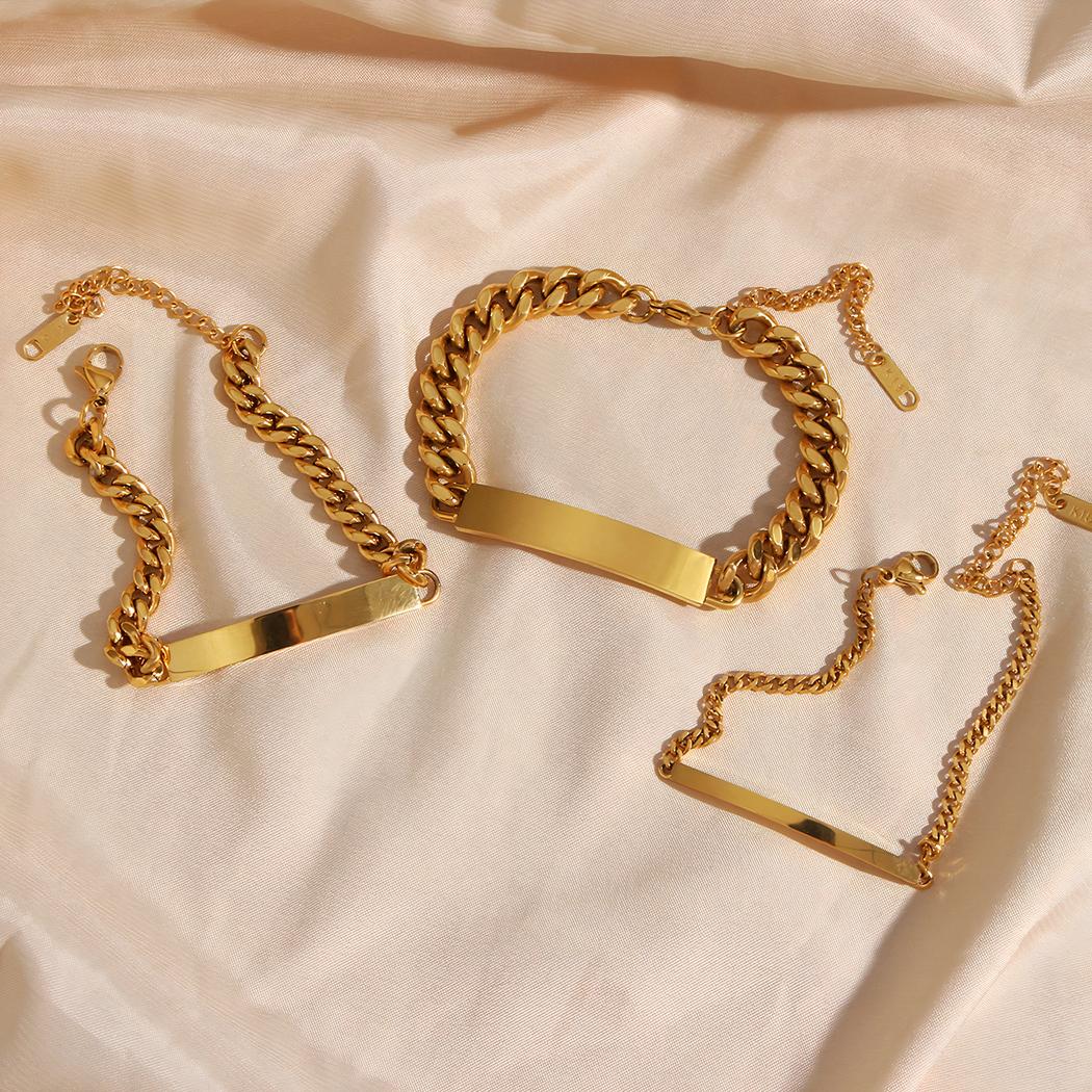 Trois modèles sont proposés pour ce bracelet, trois épaisseurs de maillons : ainsi vous choisirez selon vos goûts ou ceux de la personne à qui vous pensez l'offrir, car c'est aussi une belle idée de cadeau pour une fête spéciale comme un anniversaire par exemple. Cette gourmette à la longueur réglable est facile à porter avec toutes sortes de vêtements tous styles confondus.