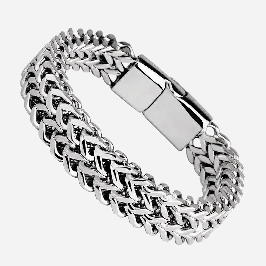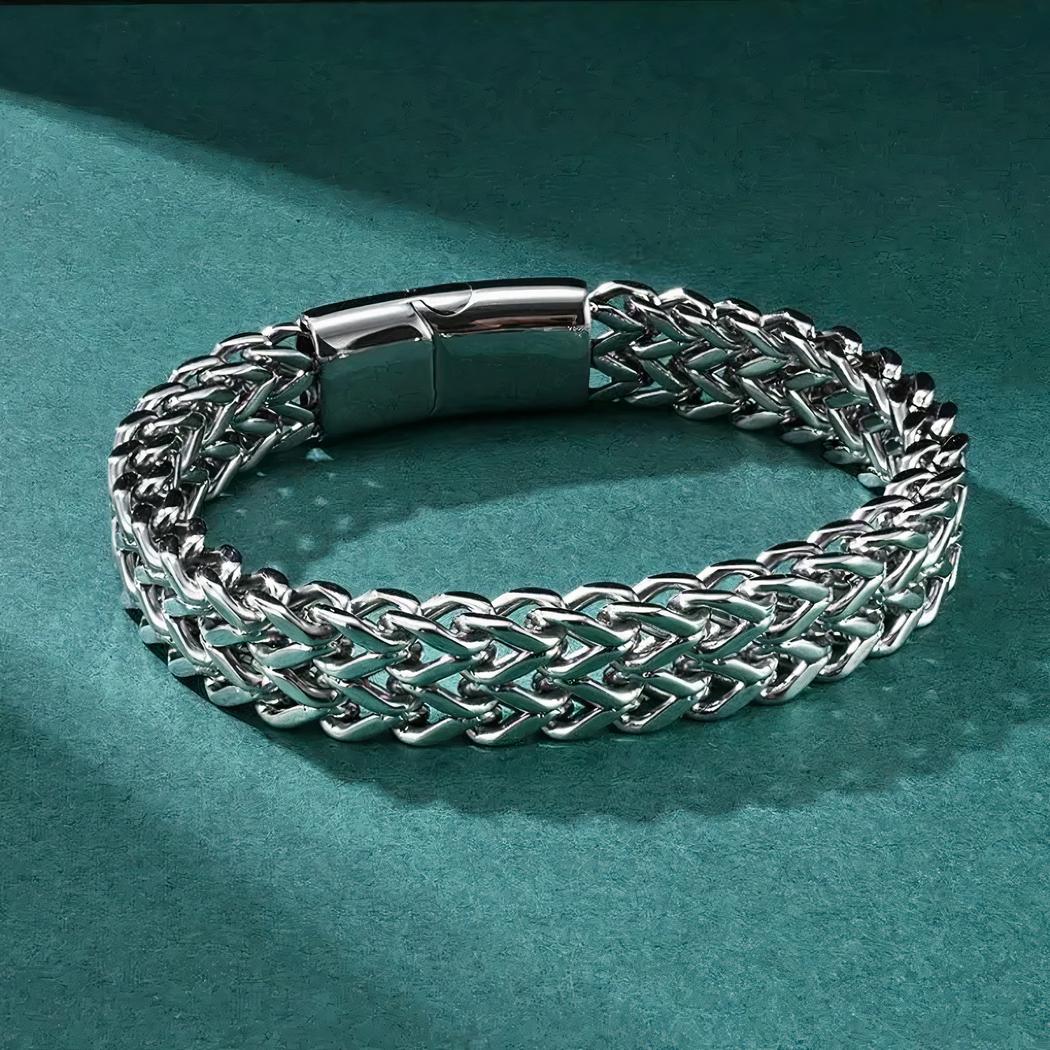 Ce bracelet chaine double est polyvalent et peut être porté seul pour un look minimaliste ou associé à d'autres bracelets pour un style superposé. La fermeture sécurisée garantit que le bracelet reste en place tout au long de la journée. Ajoutez-le dès maintenant à votre collection de bijoux pour profiter de son esthétique originale.