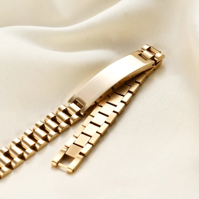 Disponible en deux coloris classiques, argenté et doré, ce bracelet s'adaptera parfaitement à tous les styles et préférences. Son design est simple et épuré, avec des maillons plats et lisses qui apportent une touche de modernité. La fermeture sécurisée à clip assure un ajustement parfait autour du poignet, garantissant confort et sécurité tout au long de la journée.