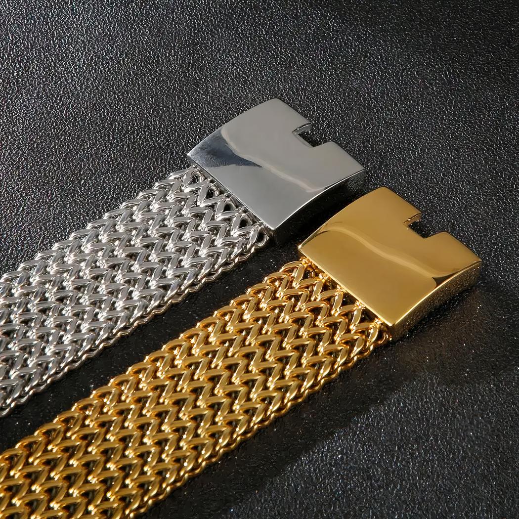 Ce bracelet maille épaisse est polyvalent et peut être porté au quotidien ou pour des occasions spéciales. Son design intemporel en fait un accessoire parfait pour compléter votre look, que vous soyez en costume ou en tenue décontractée. Choisissez vite votre coloris préféré et la taille qui convient à votre tour de poignet.