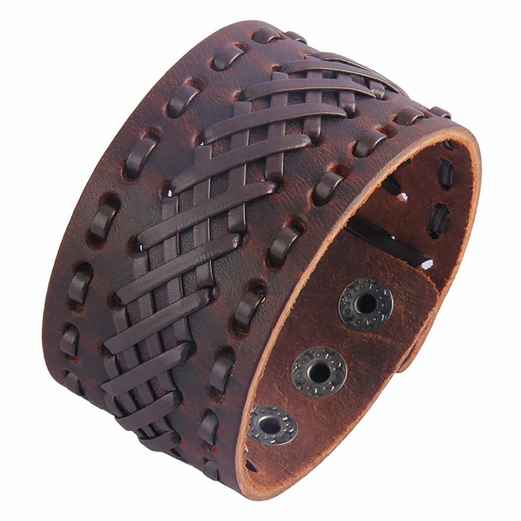 La beauté et l'élégance du cuir tressé donnent à cette manchette pour homme une classe folle. Les détails et le design sont soignés et parfaitement exécutés pour vous donner entière satisfaction. Que ce soit au niveau du tressage, des rivets pour les pressions de fermeture, des bords, tout est calculé pour apporter confort et douceur de port, au quotidien et même tout au long de la journée.