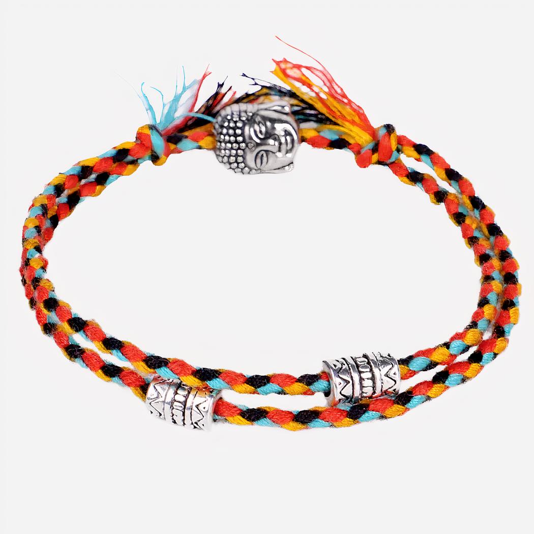 Bracelet tibétain homme en fils de coton tissés et tête de Bouddha - 19,90€