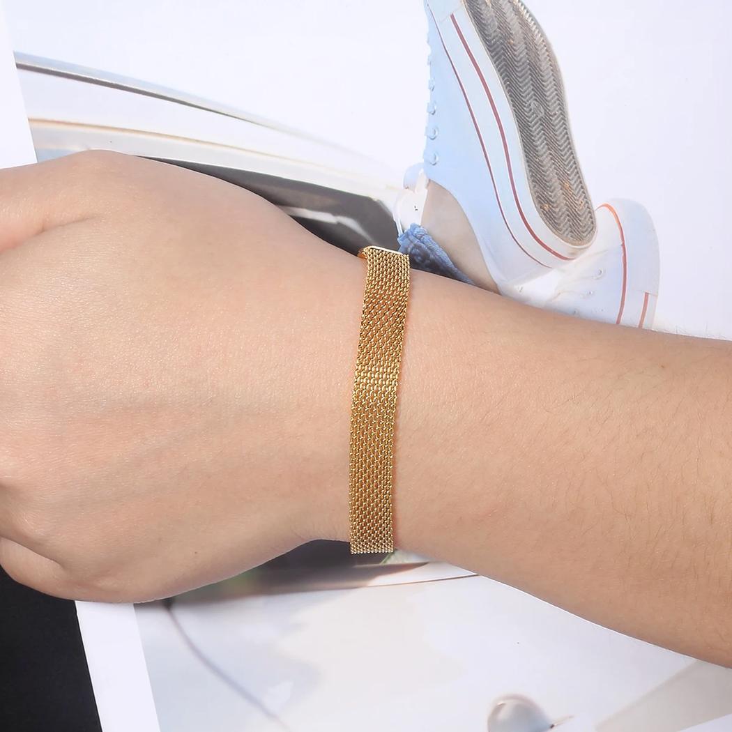 La maille en acier inoxydable de ce bracelet est finement tissée pour créer un motif attrayant et texturé qui attire l'œil. Que vous le portiez seul ou associé à d'autres bracelets, ce bijou polyvalent s'adaptera à tous les styles et occasions. Commandez-le sans plus attendre pour l'ajouter à votre collection de bijoux.