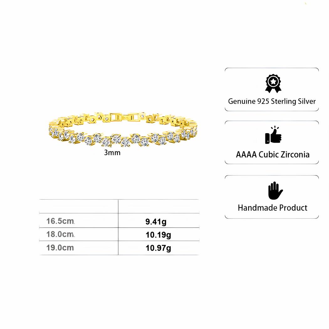 Ce bracelet tennis est proposé en deux couleurs, argenté ou doré, qui restent du pur argent certifié. Il se portera avec tout, et vous accompagnera partout, en journée comme en soirées, même dans vos séances de sport avec sa fermeture sécurisante. Il est confortable et doux au toucher, anti allergisant et sans nickel.